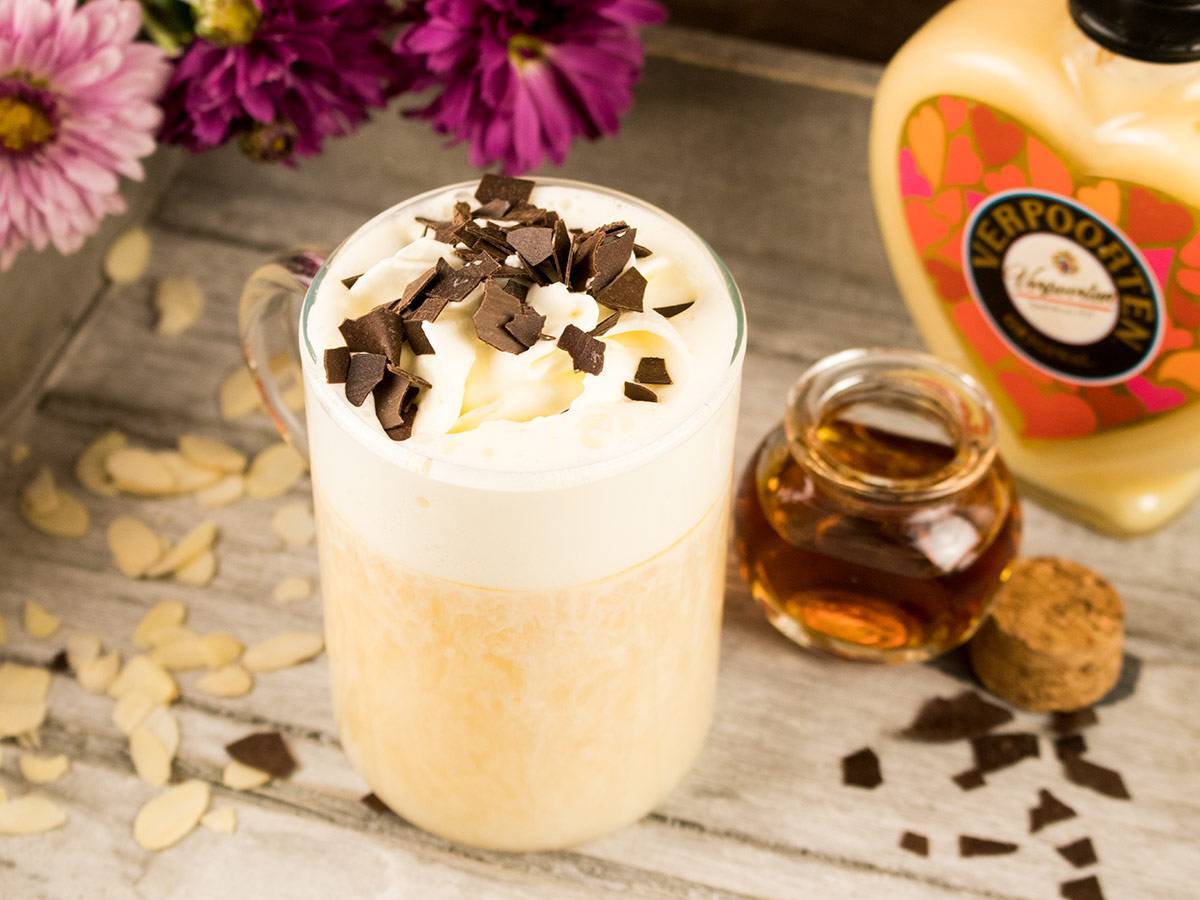 - Сверху залейте напиток получившейся сладкой желтково-сливочной смесью и посыпьте мускатным орехом.