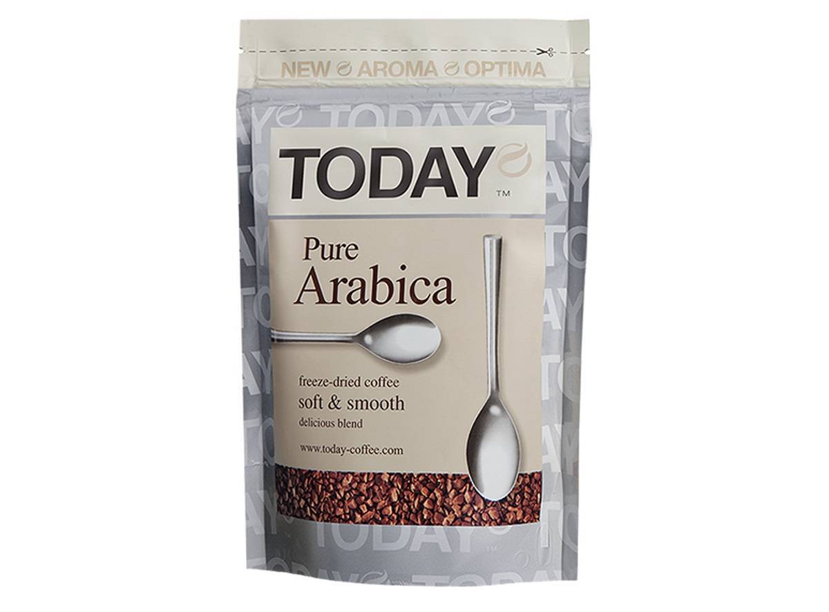 Бренд кофе Today утверждает, что в производстве применяются зерна качественной арабики, с технологией “сушка-замораживанием”. Это вакуумно-сублимированная сушка. В каждом кристалле содержится крупица молотого зернышка. Растворимые сублимированные напитки с небольшим количеством гущи.