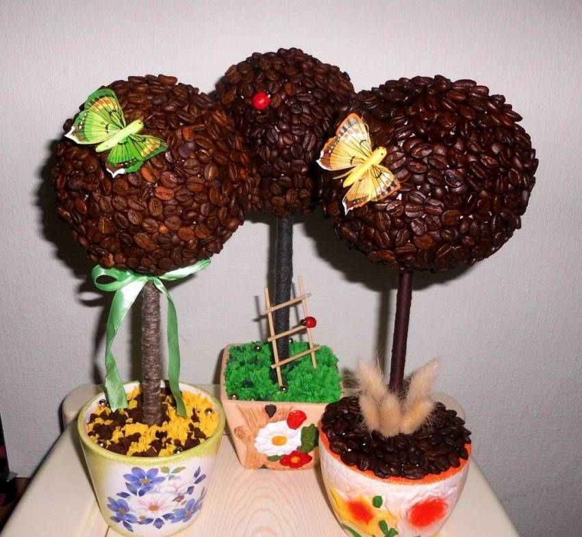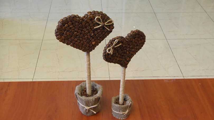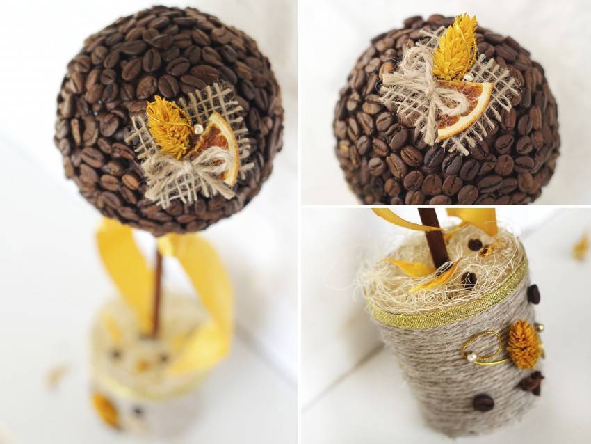 Если вы много раз видели фото топиария из кофейных зерен, но никогда не пробовали сделать его своими руками, начните с классического топиария. Освоив технику, вы сможете перейти к созданию более замысловатых изделий.