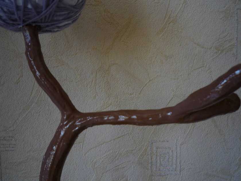 - ножку можно соорудить из веточки или закрученной проволоки. Здесь, как и в дальнейших этапах, отдавайте предпочтение своей фантазии;