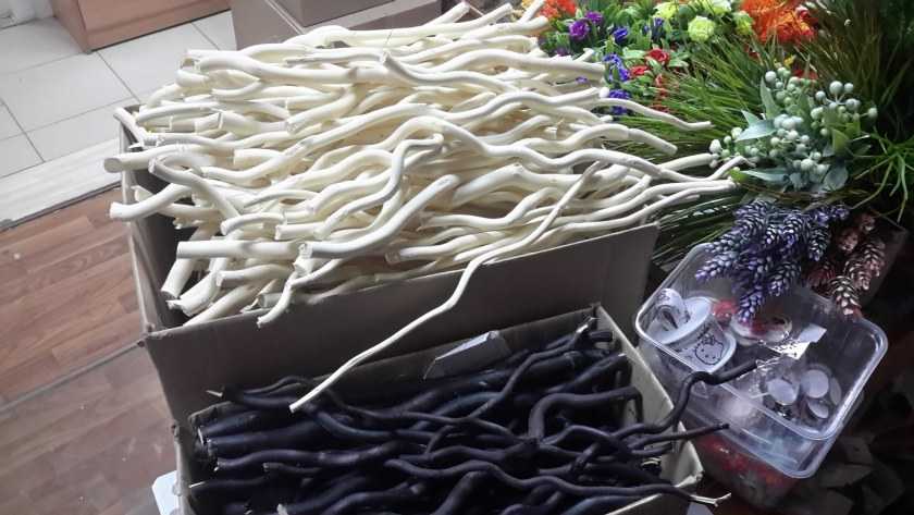 - Палочку-ствол обычно обматывают двухсторонним скотчем, а на него наматывают декоративную ленту. Чем тоньше лента, тем изящнее все смотрится. Также используют грубую нитку-шпагат.