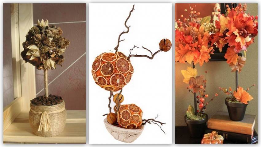 - Комнатные топиарии. Подобные изделия, изготовленные своими руками, используют для создания оригинальных интерьерных украшений.