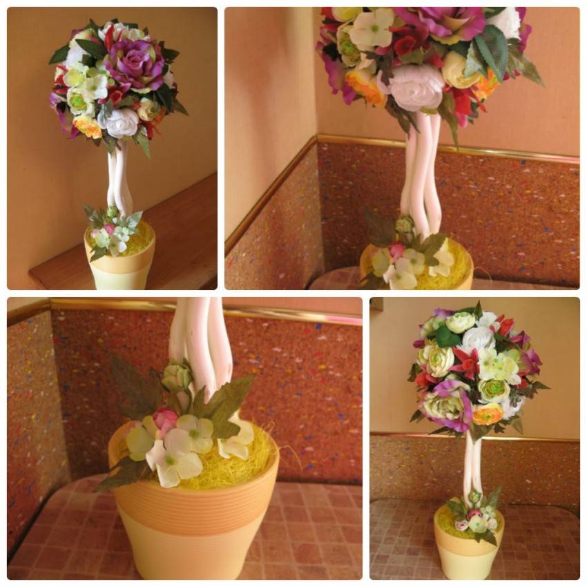 Если же вы занимаетесь изготовлением топиария впервые, то за основу лучше брать самый обыкновенный пенопласт любой причудливой формы (хотя можно взять и шар). Также нужен любой клей (желательно горячий или резиновый), ножницы и любые украшательства. Крона и ствол дерева крепятся к основанию цветочного горшка, сверху — засыпаются либо песком, либо округлыми камнями — здесь кому-как больше нравится.