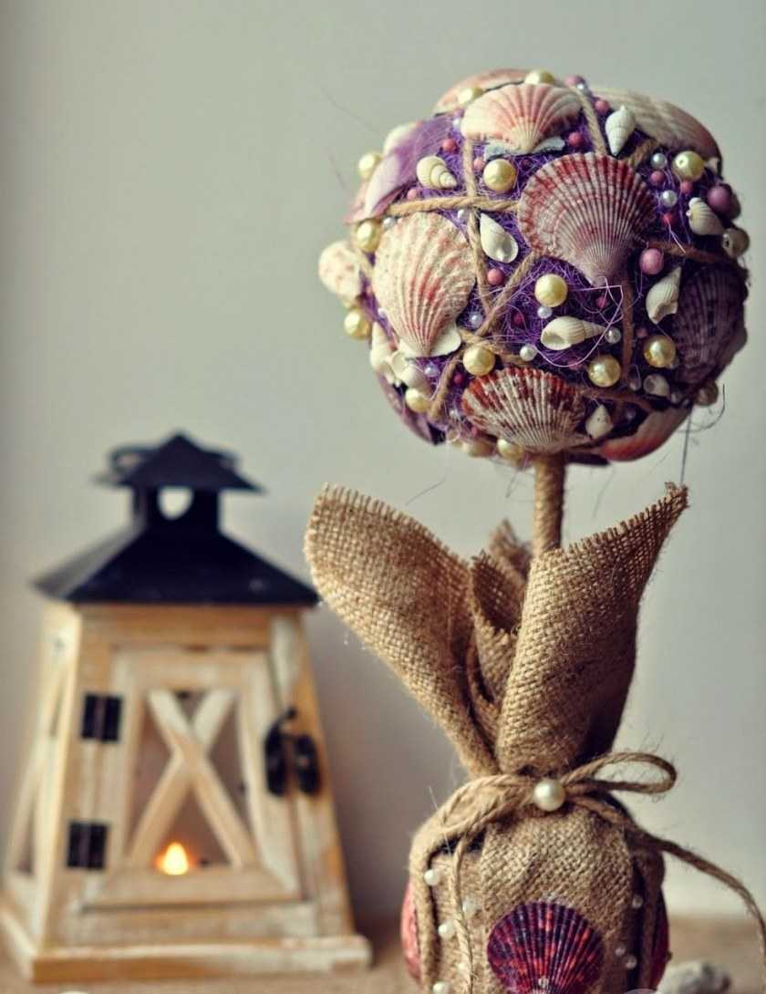 Классический. Крона такого топиария обычно имеет округлую форму, чаще всего такая поделка выполняется в сдержанных колерах с применением кофейных зерен и других природных материалов. Тут отсутствуют затейливые украшения, вариант характеризуется простотой и исключительной элегантностью — подобной поделкой можно воспользоваться для декорирования интерьера в самых различных стилистических направлениях.