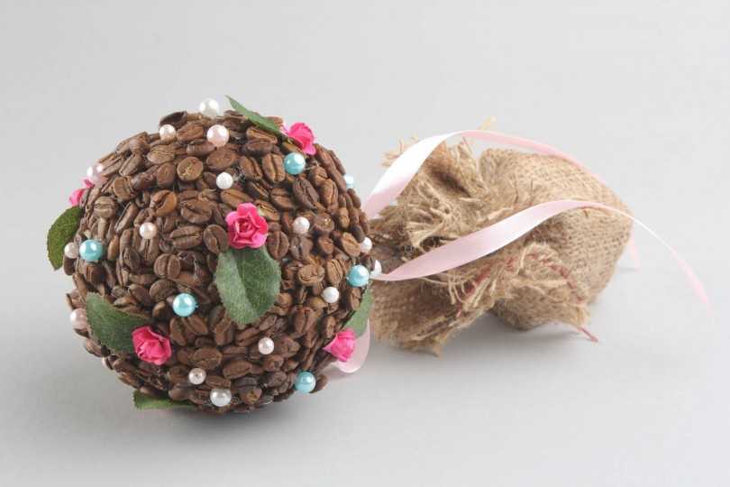 Делаем необычный топиарий из кофейных зерен своими руками и украшаем его различными способами.