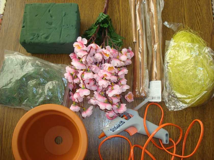 - Ствол (30 см в длину) и ленточка для его оформления;