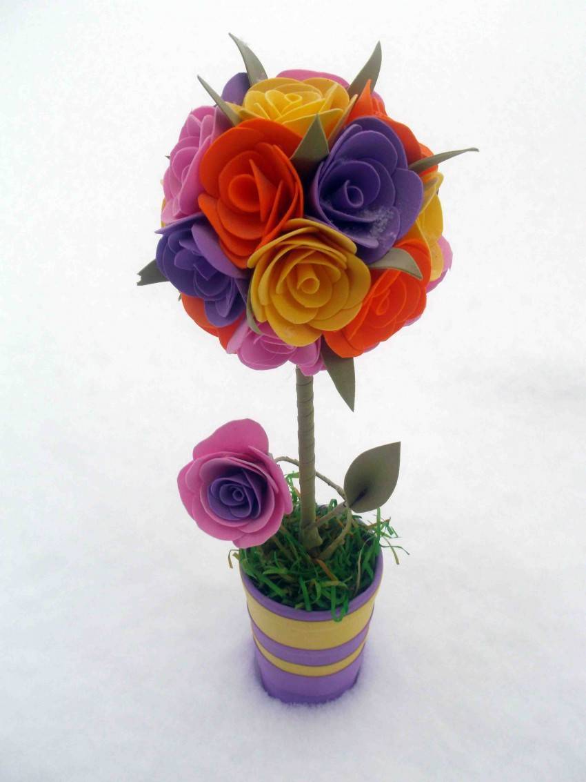 Такой простой оригинальный топиарий на 8 марта, сделанный своими руками станет идеальным украшением в этот праздничный день.
