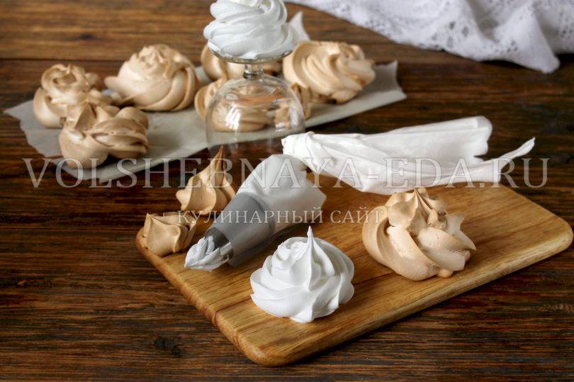 На основе меренги получается пышная плотная шапочка крема. Этот вид крема иногда называют «мокрым безе» и используют для промасливания коржей и начинения пирожных (кроме заварных, используется в корзиночках и рожках).