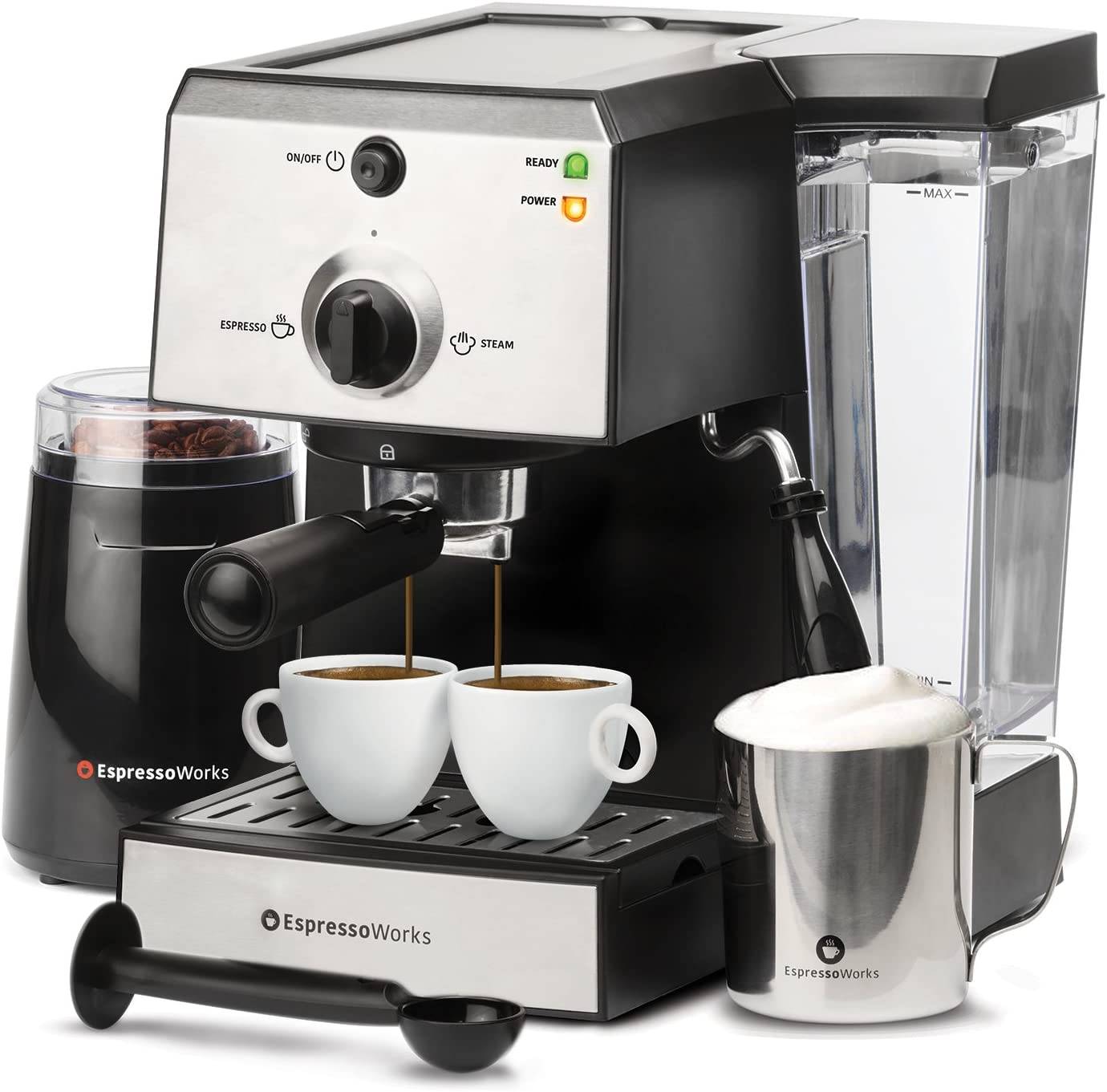 Если вам нужна универсальная кофемашина, которая производит всевозможные напитки, то наиболее подходящей для вас машиной является EspressoWorks All-In-One Espresso Machine Barista Bundle.