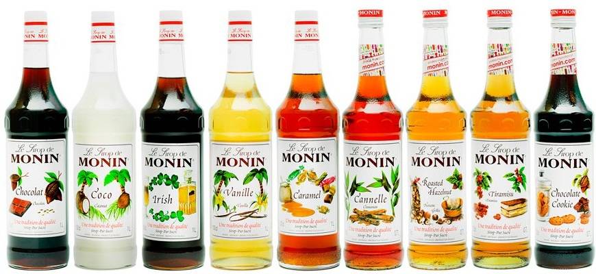Самые крупные производства ингредиентов для кофе, коктейлей и десертов сосредоточены в Европе. Лидерство среди них принадлежит французской компании Monin (Монин). Она производит топинги, ликеры и пюре для холодных коктейлей, горячих напитков и сладких десертов.