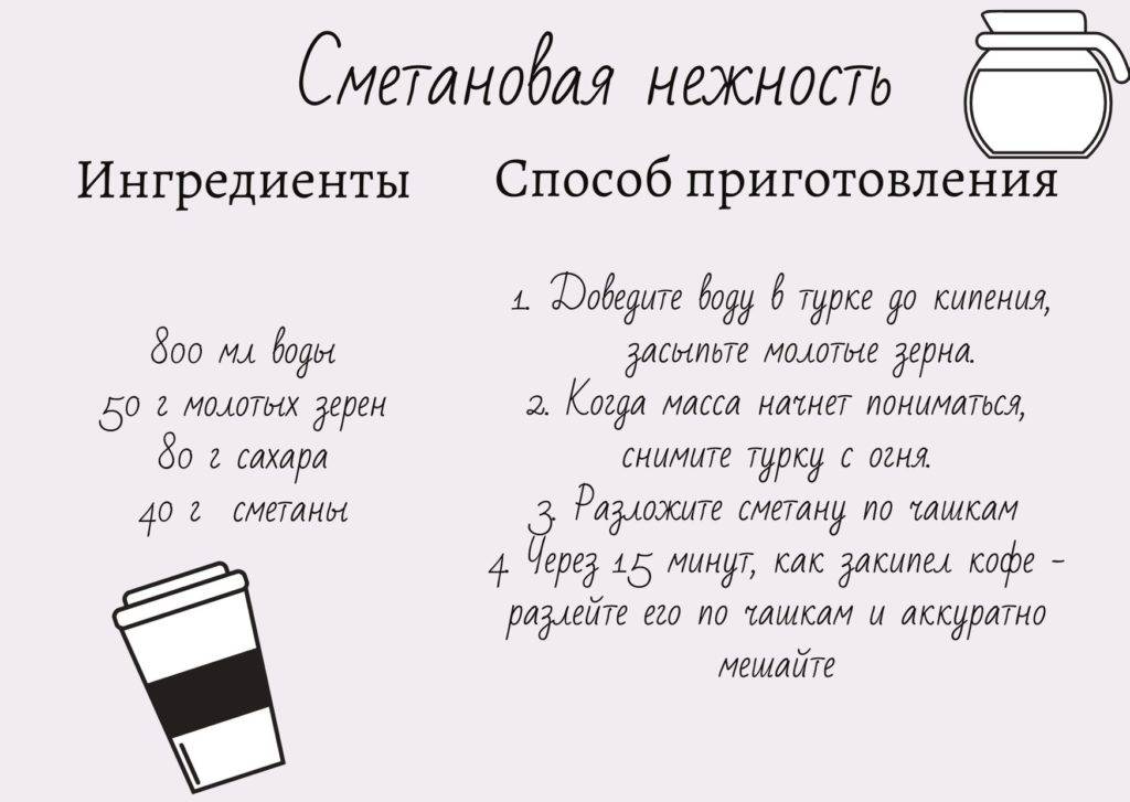 Добавленная в кофе сметана сделает его нежным и воздушным. Можно использовать покупную или домашнюю. Во втором случае она готовится из свежих сливок.