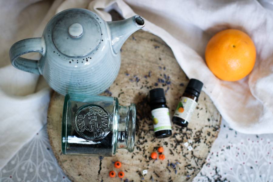 Из моих самых любимых – домашний earl grey (черный чай, который ароматизируется эфирным маслом бергамота или петитгрейна) и шоколадно-мятный чай (черный чай с кусочками шоколада, который ароматизируется 2-3 каплями эфирного масла мяты). Но нет никаких лимитов для чайного творчества, отталкивайтесь о того, что есть в вашем шкафу или растет на даче.