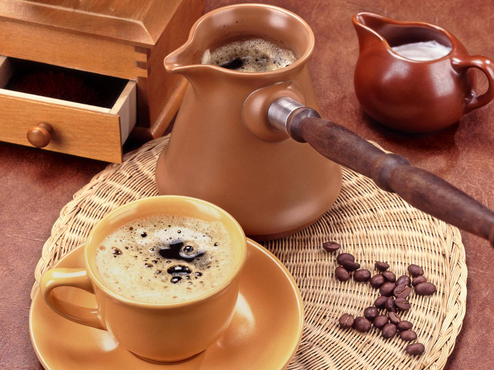 Турка, джезва или ибрик, – традиционная посуда для заваривания восточного напитка. Ее отличает достаточно широкое дно и относительно узкое или хотя бы просто сужающееся горлышко. Можно пробовать и в небольшом ковшике, но чем уже он сверху, тем лучше. Другими словами, пусть ковшик будет более высоким, чем широким, на дне большой кастрюли кофе с пенкой вы не приготовите.