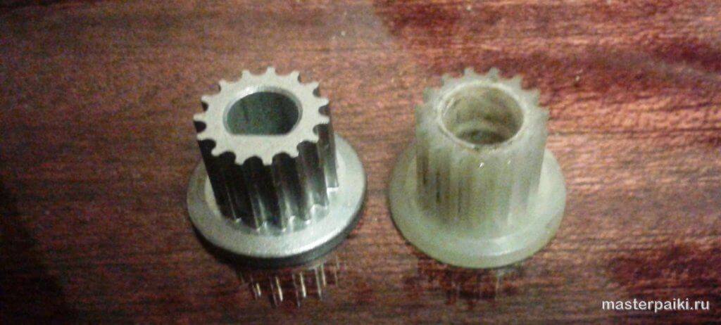 Догадались что тут не так? О да! На валу двигателя есть шлиз, а внутри шестерни его нет. Китайцы одели круглую шестерню на приводной вал со шлицом. И на последок — они закрепили ее клеем к валу, остатки которого видны в виде порошка вокруг. И тут я сел с мыслями «где я достану нужную шестерню». Конечно, был вариант сдать миксер по гарантии. Но это не наш метод, зная на сколько он там может зависнуть.