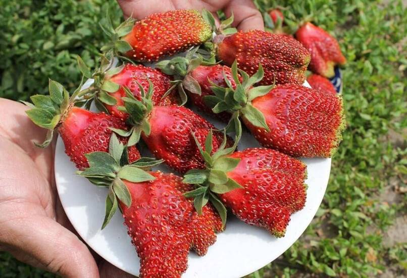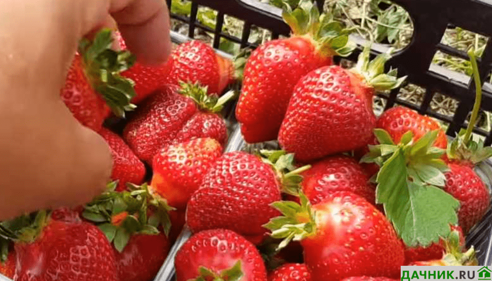Ягоды имеют продолговатую форму. Они окрашены в ярко-красный цвет. Их кожица блестящая и ровная. Мякоть имеет светло-розовый оттенок. Она является нежной, но довольно плотной. Вследствие этого клубника хорошо переносит транспортировку и длительное хранение.