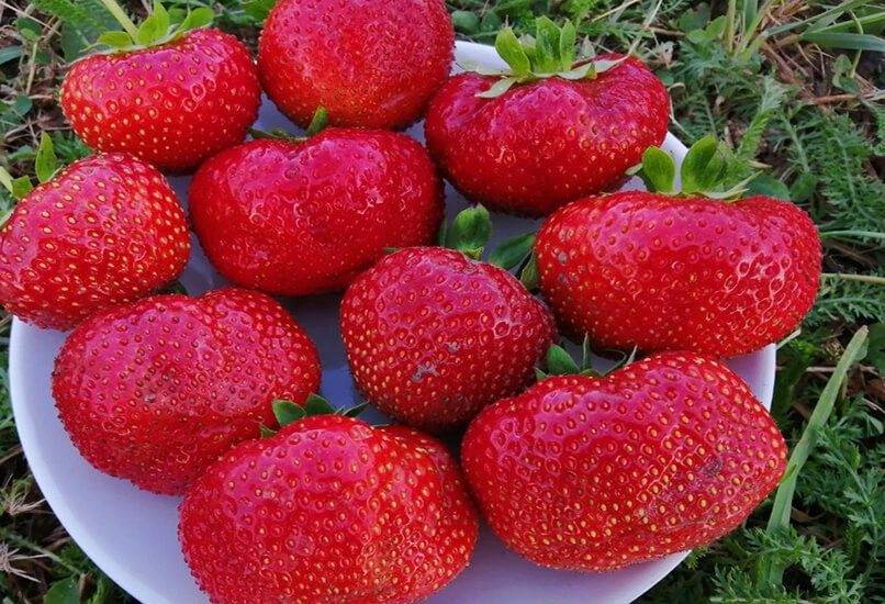 Молодой голландский сорт с высокой продуктивностью – с куста собирают до 1,8 кг ягод. Первые плоды крупные и достигают 60-90 г, основной сбор – 20-22 кг. Форма округлая, цвет красно-розовый или красно-оранжевый. Вкус у Сенсации сладкий, мягкий и сочный – некоторые садоводы сравнивают его с Гигантеллой. Эта клубника хорошо переносит мороз и засуху, к болезням среднеустойчива.