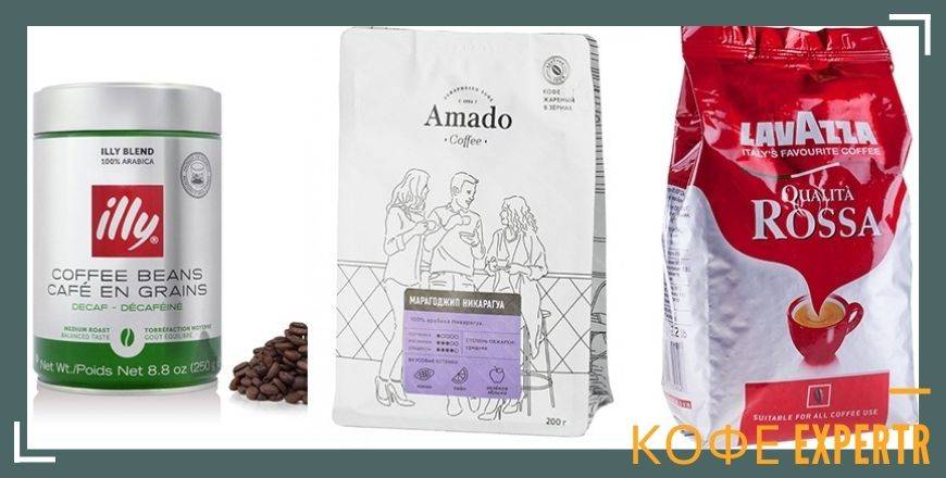 Сегодня есть большой выбор декофеинизированного кофе: зернового, молотого и растворимого. Для удобства покупателей упаковки декафа помечаются цветными маркерами.