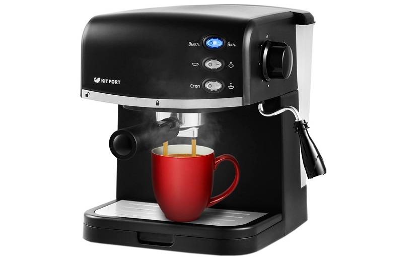 На пятом месте рейтинга – ещё одна модель от компании Kitfort, на этот раз рожкового типа. С помощью ложки-темпера порошок нужно засыпать в рожок и утрамбовать, затем машина пропускает через него разогретую воду под давлением в 15 бар, выводя в чашку насыщенный и ароматный эспрессо. Рядом с рожком размещается раструб парогенератора, вспенивающий молоко для капучино и латте. Резервуар для воды (1,5 литра) крепится сзади, что упрощает его наполнение и обслуживание.