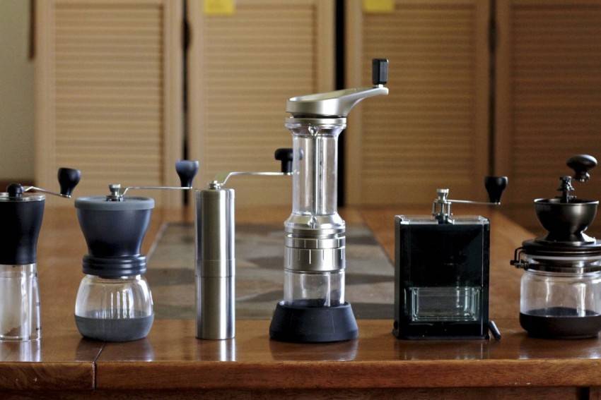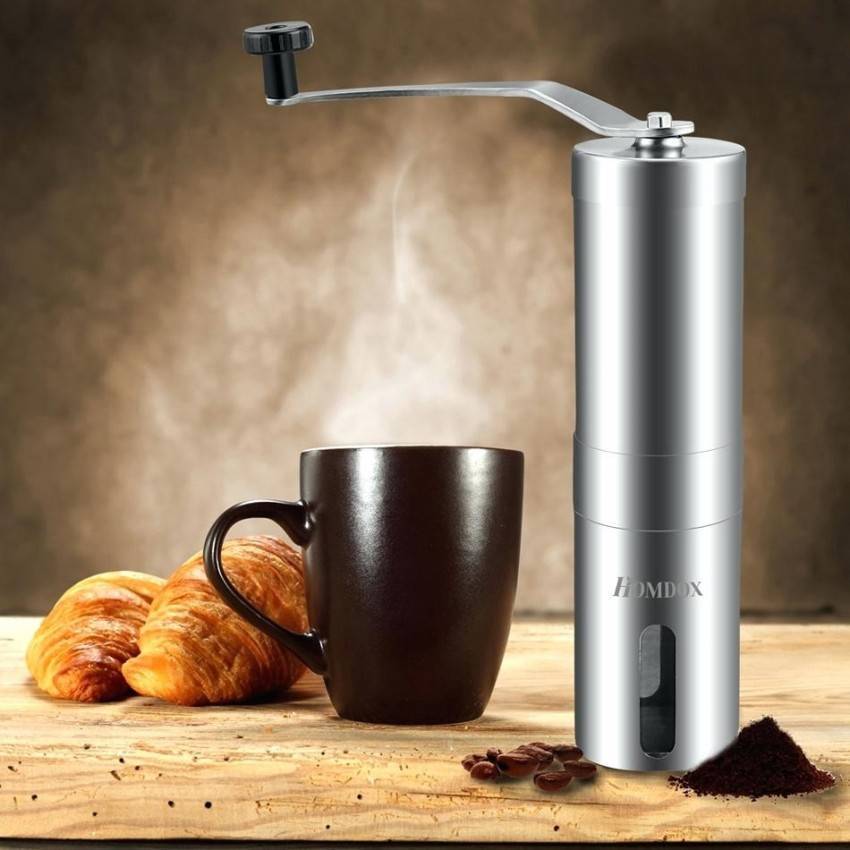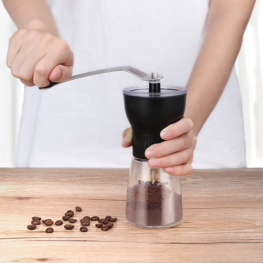 Диски ручной мельницы чаще всего бывают металлические или керамические, а регулируется тонкость помола подкруткой винтов. Дробильный аппарат представляет собой два конических жернова: первый вращается от ручки, второй жестко зафиксирован. Механическое устройство прослужит долго, потому что в нём нет электроники, сбоев в сети, да и остальные комплектующие довольно прочные. Такие приборы не пережигают кофе. А цена на ручные кофемолки всегда дешевле электрических моделей.