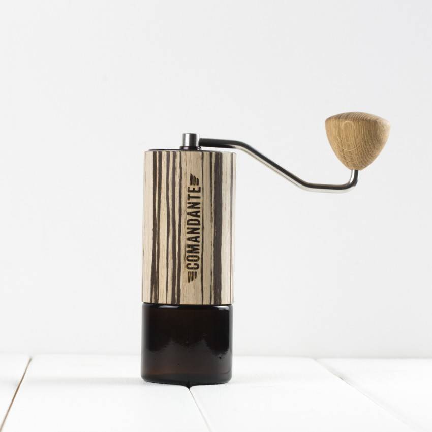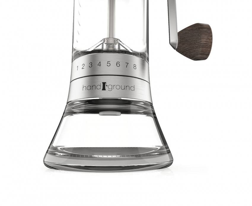 В ручной кофемолке представленной модели перемалывание зерен выполняется керамическими жерновами, приводимыми в движение рукояткой. Степень помола регулируется самостоятельно, путем прикручивания винта, расположенного в верхней части прибора. Целые зерна засыпаются в открытую металлическую чашу, а измельченные попадают в специальный деревянный ящичек снизу. Использование керамических материалов позволяет сохранить натуральный аромат и вкус кофе. Корпус выполнен из дерева, керамики и металла.