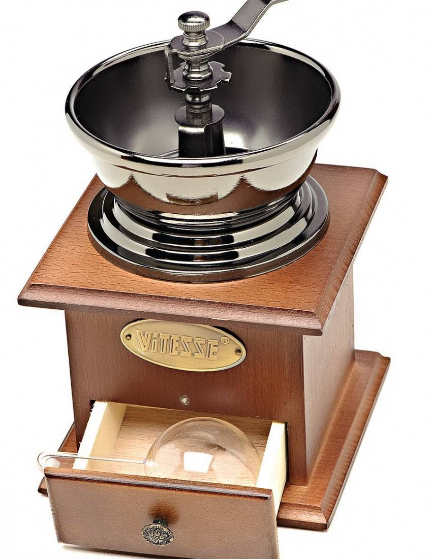 Кофемолка ручная жерновая позволяет получить ароматный кофе в специальный выдвижной ящик от 5 минут и дольше (на одну порцию). Утром опаздывающему на работу человеку это время покажется потраченным зря, но насладиться кофейным ритуалом, никуда не торопясь, можно лишь подобным образом.