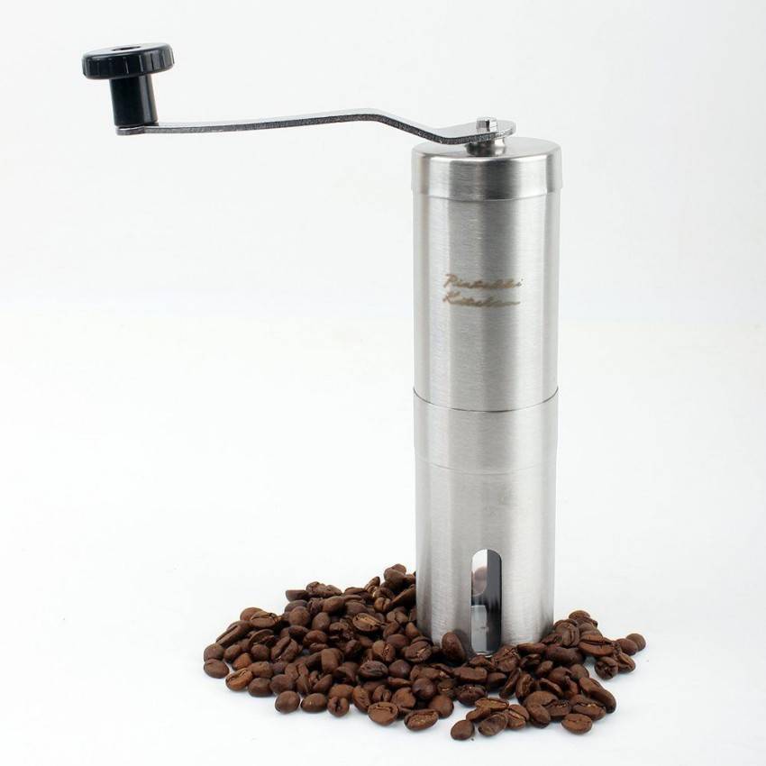 Рейтинг ручных кофемолок возглавляет красивая и функциональная модель GiPFEL, изготовленная из экологически безопасных материалов. Снаружи корпус прибора выполнен из каучука, а внутренняя часть сделана из углеродистой стали. Главное преимущество кофемолки – натуральный вкус и аромат измельченных кофейных зерен.