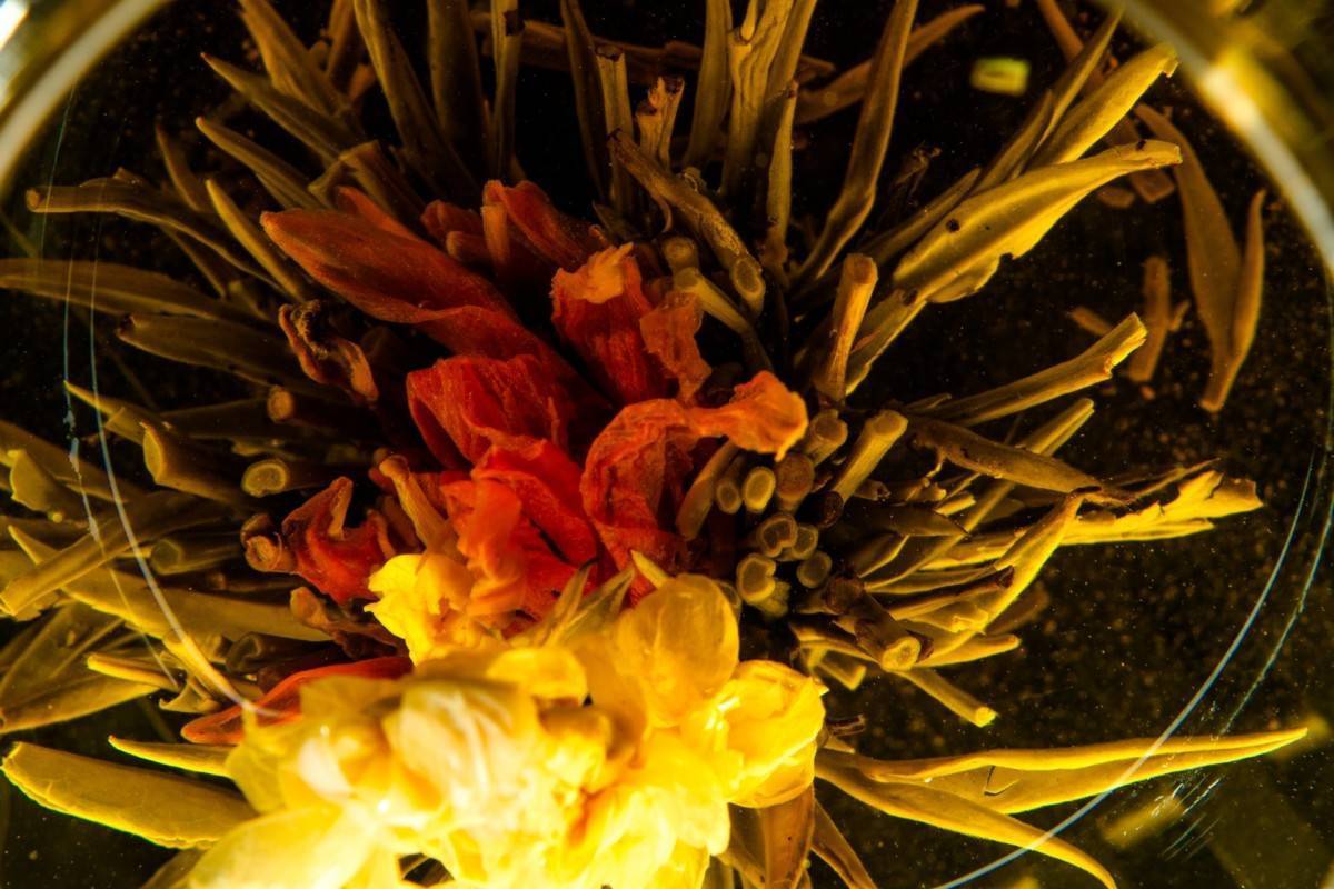 Среди многообразия китайского чая, связанный, или цветущий чай – самый необычный. В сухом виде он представляет собой маленький серый комочек. Но при его заваривании и начинается чудесное превращение. Медленно, лепесток за лепестком, раскрывается уникальный бутон, в центре которого распускается яркий цветок.