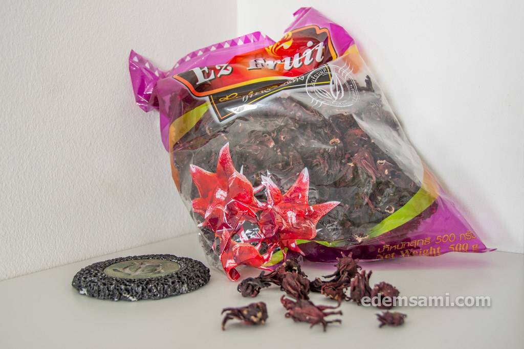 О, чуть не забыла о красном чае, каркаде. Он тут есть. Пишу это для любителей, ценителей и гипертоников. Потому что я даже как-то пару раз просила привезти его нам из России, пока не обнаружила его на самых видных местах в супермаркетах Теско и Макро. Есть фасованные варианты пакетаками по 50 г за 30 батов, есть вот такой огромный пакет за 240 в Макро, есть развесной в Теско. Ну, в общем, есть, из чего выбрать.