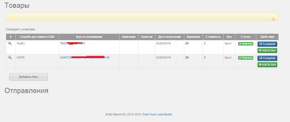 После того, как вы добавите посылки или после того, как посредник получит ваши товар, в вашем кабинете появятся информация о них: