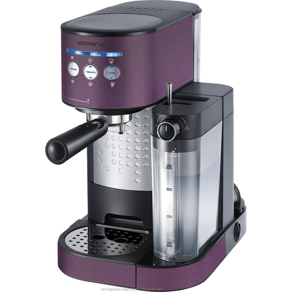 Это кофемашина с капучинатором полуавтомат. Она не мелет кофейные зерна, требуется добавлять в нее только молотые. Взбитое молоко Polaris сделает сам, вам не придется тратить время для создания молочной шапки. Машина быстра в работе, так что ждать чашку кофе придется не более нескольких секунд. Приятным бонусом будет прибор для утрамбовывания кофе и мерная ложка. Машина приспосабливается под любую величину чашки.
