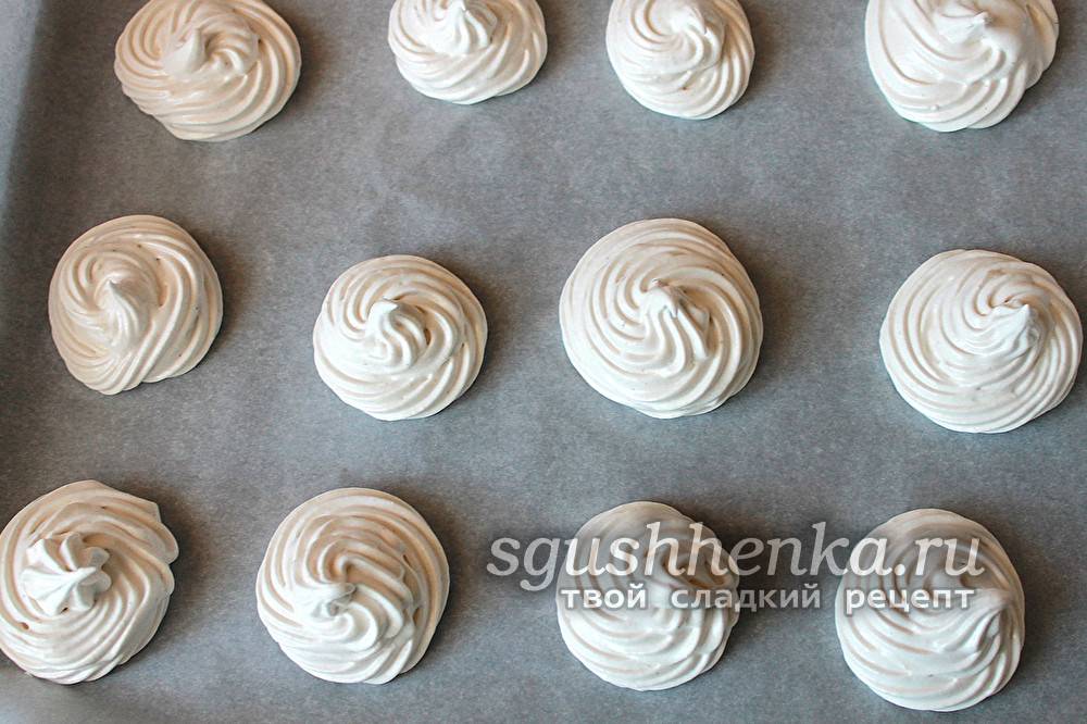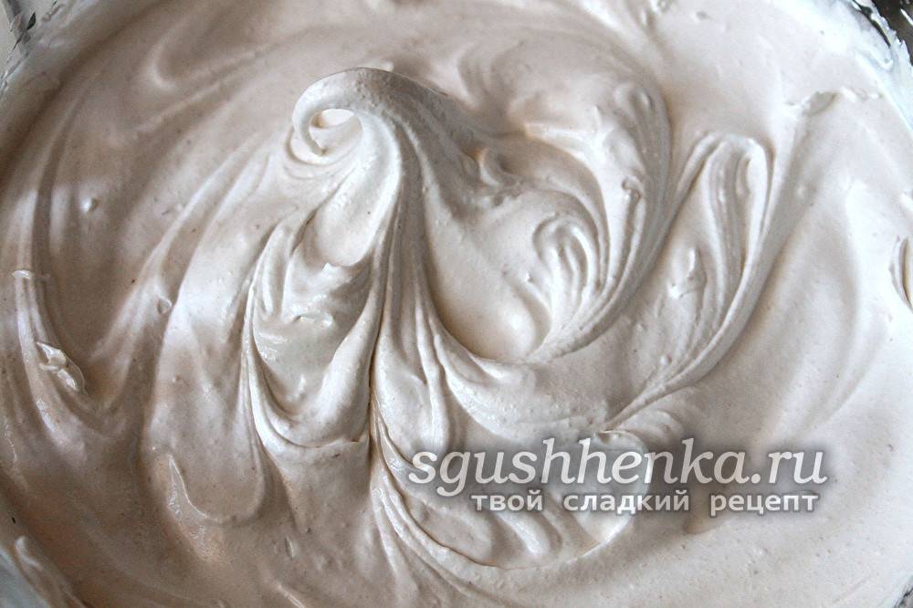 Переложите взбитую массу в кондитерский мешок, выдавите на пробу небольшое количество на блюдце. Смесь не должна растекаться по поверхности.