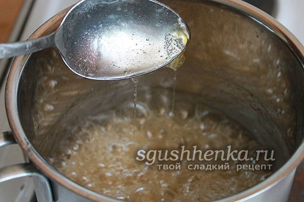 6. Переходите к сиропу: смешайте все указанные в рецепте ингредиенты, поставьте смесь на медленный огонь, доведите до кипения и проследите, чтобы сахар полностью растворился. Варите еще 5-7 минут, постоянно помешивая.