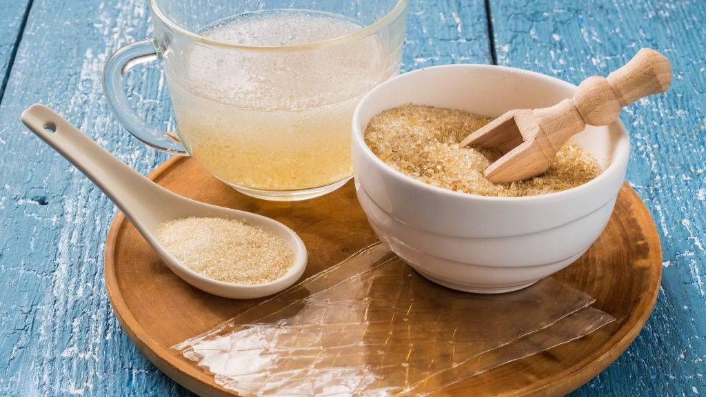 При замене необходимо знать, что желирующие свойства растительного продукта значительно выше коллагенового, в среднем составляют 1 к 4 – 1 г агара соответствует 4 г желатина.