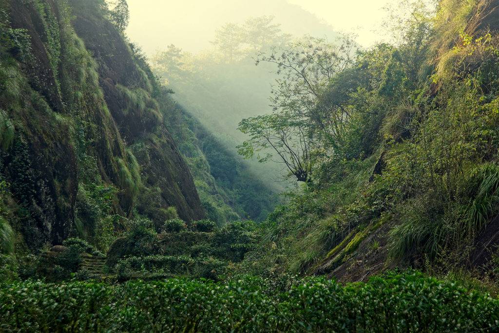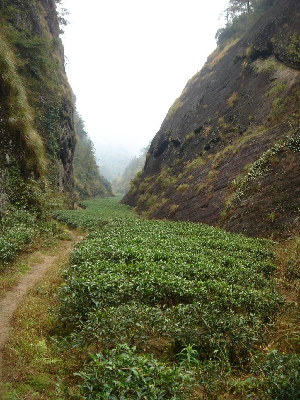 И именно в этих ущельях как раз и растёт утёсный чай, вкус которого (то, что по-китайски называется Чжэн Янь (正岩) – «настоящий утёсный») формируется благодаря тому, что он растёт не на обычной земле, а именно на почве, созданной горами.
